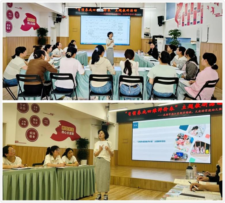 为深入贯彻落实《成都市3-6岁儿童习惯养成教育实施方案(试行)》文件精神,聚焦保育员在幼儿三大习惯教育方面的有效指导与落实,4月10日,成都市温江区柳岸锦城幼儿园与天府游家渡幼儿园携手组织保育团队,开展了一场以 “习惯养成四维评价表” 为主题的教研活动。活动旨在积极探寻儿童习惯养成教育路径,推动幼儿全面发展,切实提升保育员专业素养。