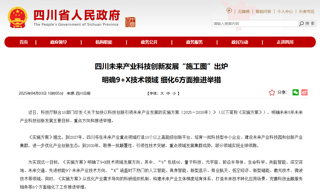 8个“未来货”,十年后能不能当大哥,就看它们,包括第六代移动通信(6G)、量子科技、元宇宙、前沿生物、脑科学与脑机接口、可控核聚变、超高速轨道交通、深地科学。比如可控核聚变,要是四川能搞成,电费可能比矿泉水还便宜;脑机接口成熟了,瘫痪病人靠意念就能玩手机。四川的算盘是现在砸钱卡位,等十年后技术爆发,自己就是“规则制定者”。而且目标也明确,到2027年,培育10家以上高成长创新型企业,并搞出几个能拿出手的样品,让产业化“能看到影子”。