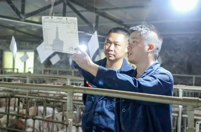 工作人员正在核对生猪喂养数据 图源:德康官网