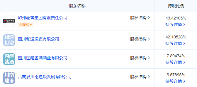 天眼查显示,四川建兴园区运营管理有限公司由泸州老窖集团等四家公司出资设立,属国有参股企业,其中泸州老窖集团为大股东,持股43.4211%。