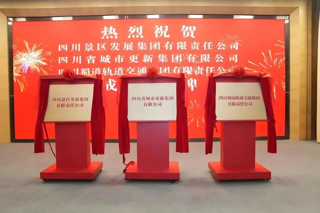 2025年7月28日,四川景区发展集团、四川省城市更新集团、四川蜀道轨道交通集团揭牌成立,四川景区发展集团将统筹全省优质资源,推进与市(州)共建共营机制;四川省城市更新集团将整合“检策规投建运”全流程业务;四川蜀道轨道交通集团将实现轨道交通装备制造、投资建设运营一体化发展。