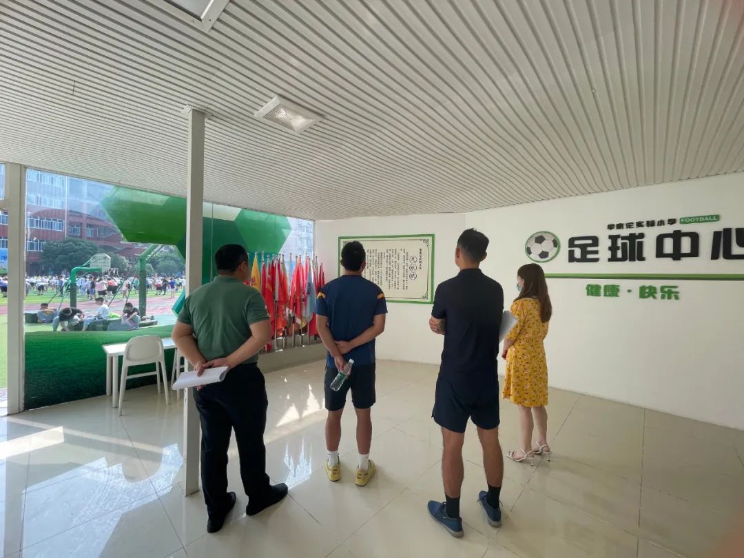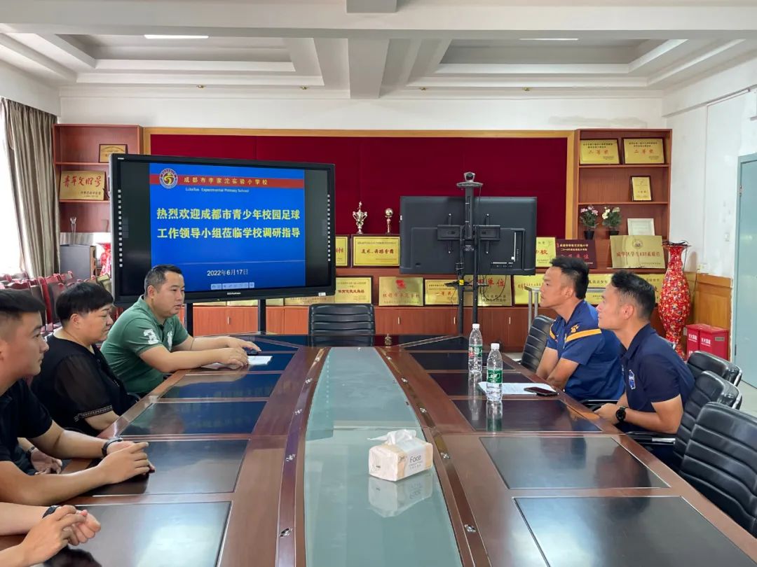6月17日,成都市青少年校园足球工作领导小组郑汪洋指导、唐耀指导莅临成都市李家沱小学调研指导。