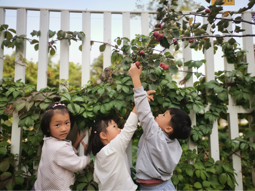 大自然是最好的老师,山楂课程是给孩子们秋天的礼物,在这个诗意盎然的季节里,给孩子们一段美好的记忆。孩子们陪着园里的山楂树,从展露新芽到枝繁叶茂,从含苞待放到硕果累累,一起呵护着这些小生命,和它们一起恣意生长。