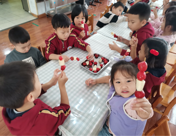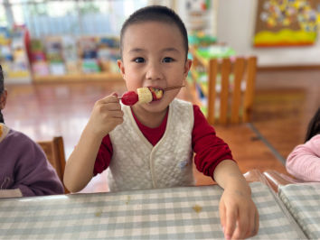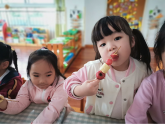 孩子们品尝着自己制作的糖葫芦,把它分享给自己的小伙伴,送给自己的老师和其他小伙伴。