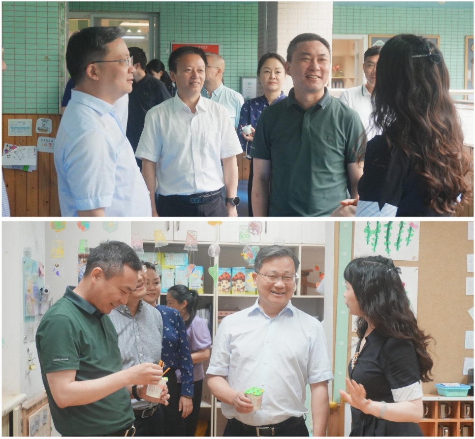 慰问组一行在光华实验幼儿园园长何煦带领和讲解下,参观了幼儿园环境,并深入班级及功能室了解孩子们在活动中的表现,领导们一边参观环境,一边亲切地询问了幼儿园招生、安全等情况,并对幼儿园的办学思想、教育质量、处处育人的幼儿园环境与阳光自信的孩子们给予充分肯定。杜局长指出幼儿园阶段就是让孩子在游戏中快乐的成长!