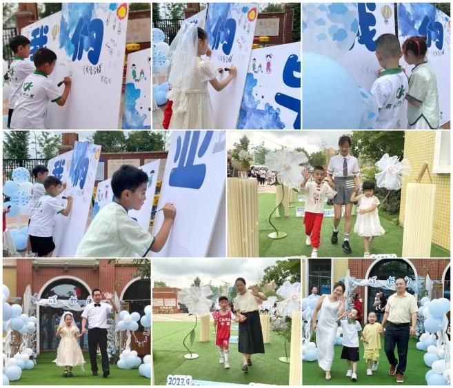 一入园,孩子们便在签到板上写下自己的名字,也将开启人生旅途的新篇章!他们盛装出席,牵着爸爸妈妈的手,踏着希望的步伐,洋溢着灿烂的微笑,自信、勇敢、坚定地走过成长门,走向更精彩的未来!