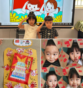 活动前期,结合各年龄段幼儿发展特点,各班开展了国庆主题教育活动,通过一系列的学习活动,让孩子们知道了祖国妈妈的生日、了解了祖国的大好河山,从而萌发了孩子们爱祖国爱家乡的情感。同时通过手工创作、环境打造等方式,师幼携手合作,制作出一幅幅独特的作品,献礼祖国妈妈。