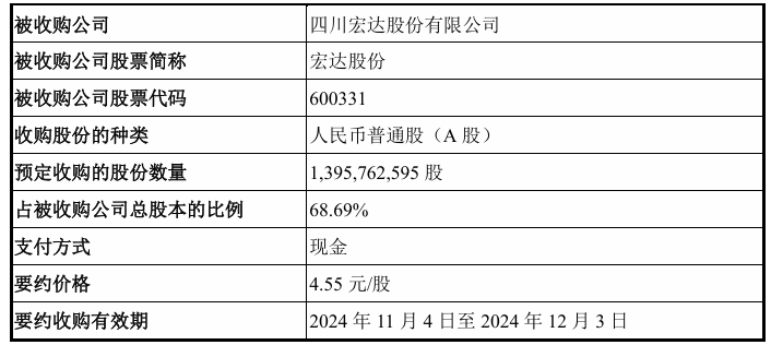 11月8日晚间,宏达股份发布要约收购提示公告。蜀道投资集团有限责任公司(简称“蜀道集团”)将以每股4.55元收购公司13.96亿股,总计占宏达股份总股本的68.69%。