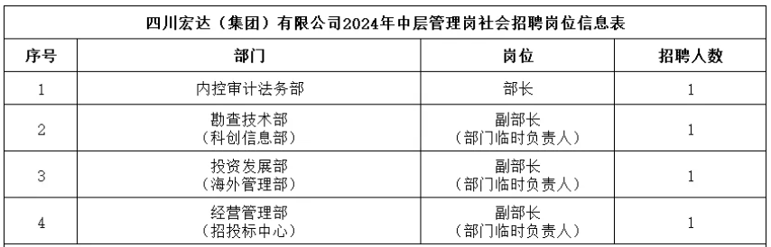 宏达集团已于近日开启人事招聘,其中包含多名中层管理岗位招聘,或将迎来新局面。