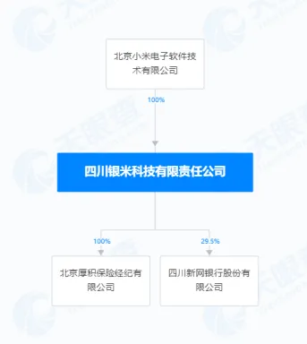 四川银米,位于四川省成都市,成立于2005年,为小米集团成员,主要从事研究和试验发展。股权穿透来看,四川银米由北京小米电子软件技术有限公司100%持股。