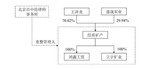 2023年11月,经质矿产等三家公司重整案的重整投资人资格公开拍卖,起拍价为17.38亿元。最后被西藏盈晟实业有限公司(现名温州盈晟实业有限公司,下称“盈晟实业”)以65.08亿元的高价竞得,溢价率超过270%。