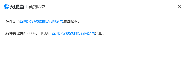 不过据天眼查显示,安宁股份最终撤回了该份诉讼,并承担了1.3万元案件受理费用。
