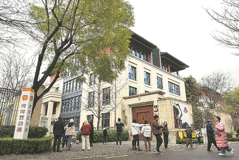 ▲影迷们在成都可可豆动画影视有限公司前打卡。 图据新华社