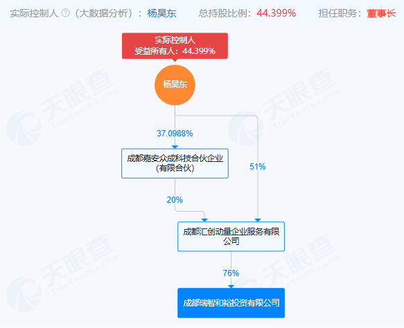 据天眼查数据显示,瑞智和裕实控人为杨昊东,总持股比例44.399%。