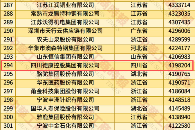 财富成都热点关注:从饲料经销商到掌控年营收超419亿的农牧巨头,王德根带着他的德康控股集团首次闯进中国民营企业500强,正在以独特的“德康模式”抄行业大佬们的作业。9月9日,科创四川获悉,全国工商联发布“2025中国民营企业500强榜单”,四川德康控股集团有限公司首度跻身中国民企500强,位列第294位,营收总额达到419.82亿元。