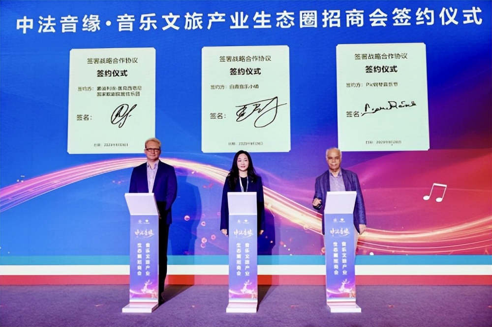 香颂文化、白鹿爱乐董事长巫平丽与蒙彼利埃-奥克西塔尼国家歌剧院管弦乐团艺术代表亚历山大·米哈伊洛夫、Pic钢琴音乐节创办人皮埃尔·瑞切签订合作协议。这批高质量签约项目覆盖了文化产业运营、旅游平台搭建、特色产品开发、艺术演出合作多个领域,将有效推动白鹿音乐文旅产业协同发展,吸引更多上下游企业关注入驻,加速白鹿文旅产业的规模化、高质量发展。