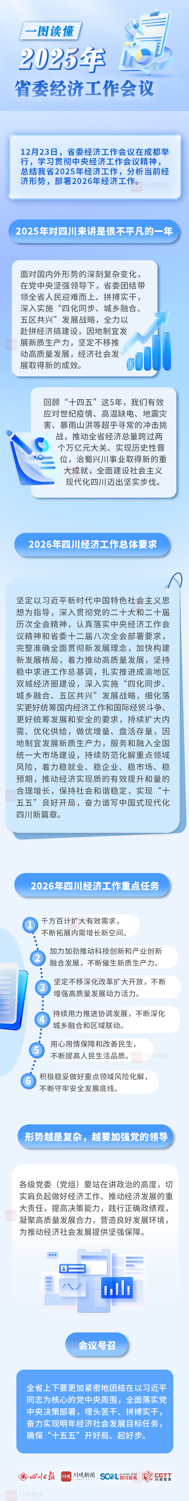 12月23日,省委经济工作会议在成都举行,学习贯彻中央经济工作会议精神,总结我省2025年经济工作,分析当前经济形势,部署2026年经济工作。