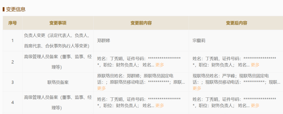 1月3日消息,国家企业信用信息公示系统显示,2025年12月26日,宏胜饮料集团有限公司(以下简称“宏胜集团”)法定代表人再次发生变更,由“郑群娣”变更为“宗馥莉”。