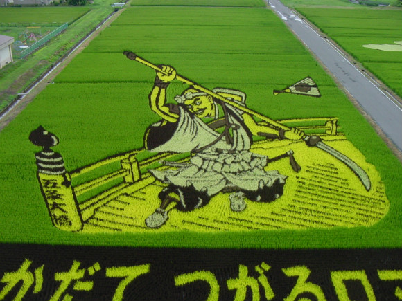 坐落在日本东北部的小村庄Inkadate,长期依赖种水稻营收。但是由于日本人近几年来逐渐降低了对稻米的消费,Inkadate便和广告机构Hakuhodo合作,在稻田里用不同颜色的稻米种出了艺妓、武士等日本传统文化经典形象,并拍摄了广告视频。想想如此浩瀚的稻田呈现出这样巨幅的画作,还是相当震撼的。