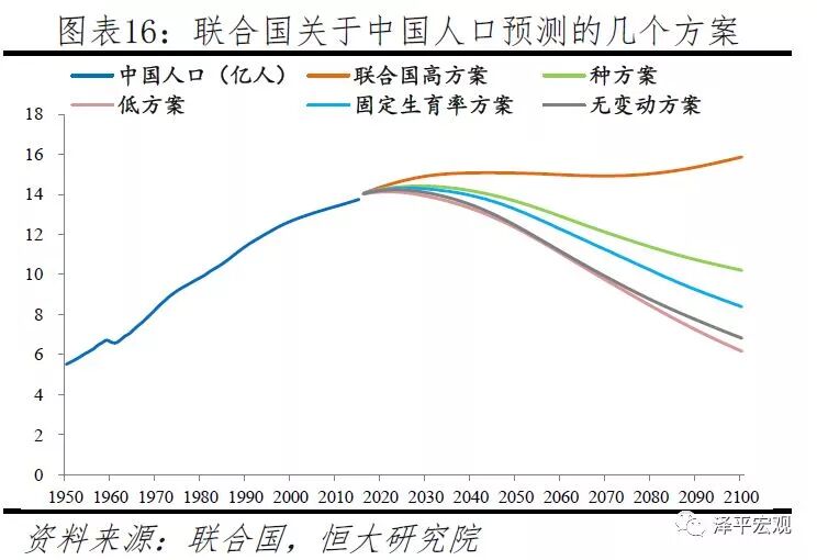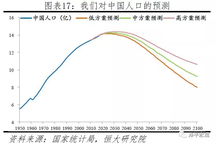 按照目前的生育趋势,中国人口总量峰值日益临近,只是各机构、人口学者对何时见顶存在一定争议。《国家人口发展规划(2016-2030年)》认为2015年总和生育率在1.5-1.6之间,假设2020年、2030年总和生育率分别为1.8,预测中国人口将在2030年前后见顶,峰值为14.5亿人。
